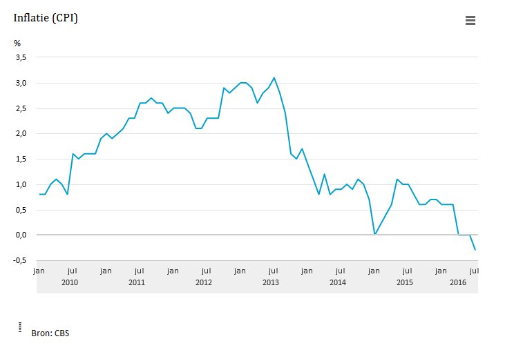 “Goederen en diensten zijn de afgelopen maand in Nederland goedkoper geworden. Volgens het Centraal Bureau voor de Statistiek is er voor het eerst sinds december 1987 sprake van negatieve inflatie.” (Bron: NOS)
