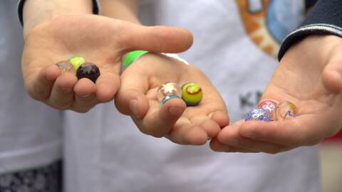 Knikkeren is al eeuwen populair. Vanavond begint een nieuw tv-programma helemaal over knikkeren. Het heet Marble Mania. Jeugdjournaal beantwoordt drie vragen over knikkeren in de video. (Bron: Jeugdjournaal)